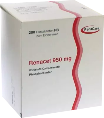 | Name: | RENACET 950 mg Filmtabletten 200 St Filmtabletten |