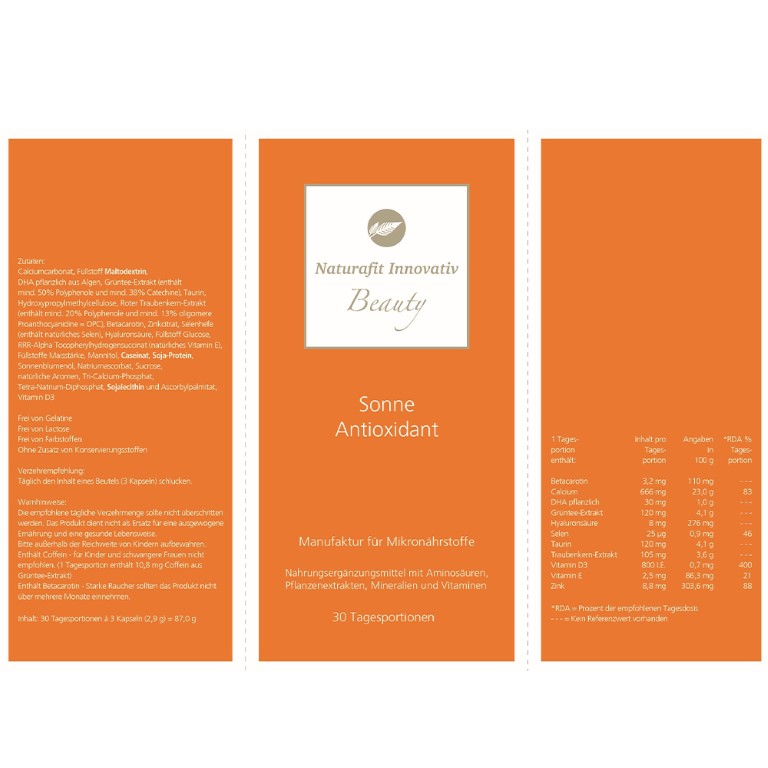 | Name: | naturafit Innovativ Beauty Sonne Antioxidant Tagesportionen, 90 St. Kapseln |