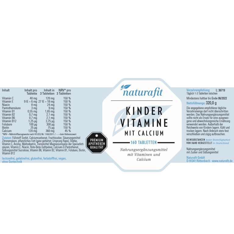 | Name: | naturafit Kindervitamine mit Calcium Tabletten, 160 St. Tabletten |