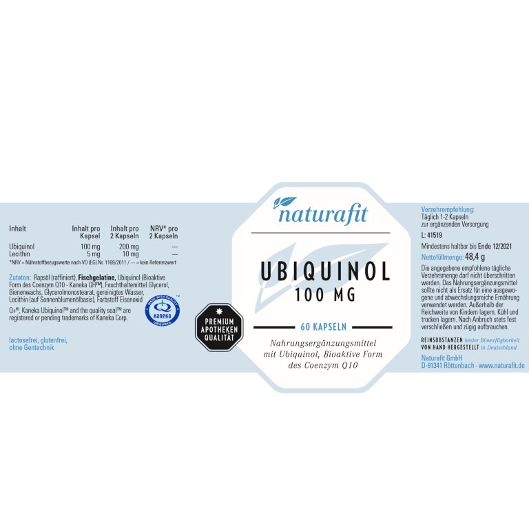 | Name: | naturafit Ubiquinol 100 mg Kapseln, 60 St. Kapseln |