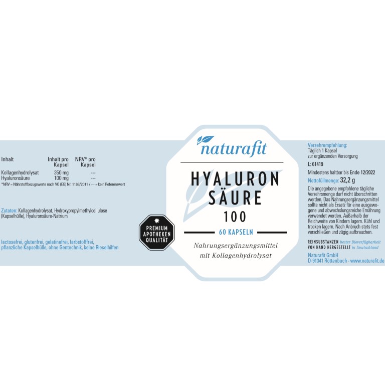 | Name: | naturafit Hyaluronsäure 100 Kapseln, 60 St. Kapseln |