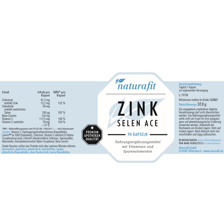| Name: | naturafit Zink Selen ACE Kapseln, 90 St. Kapseln |