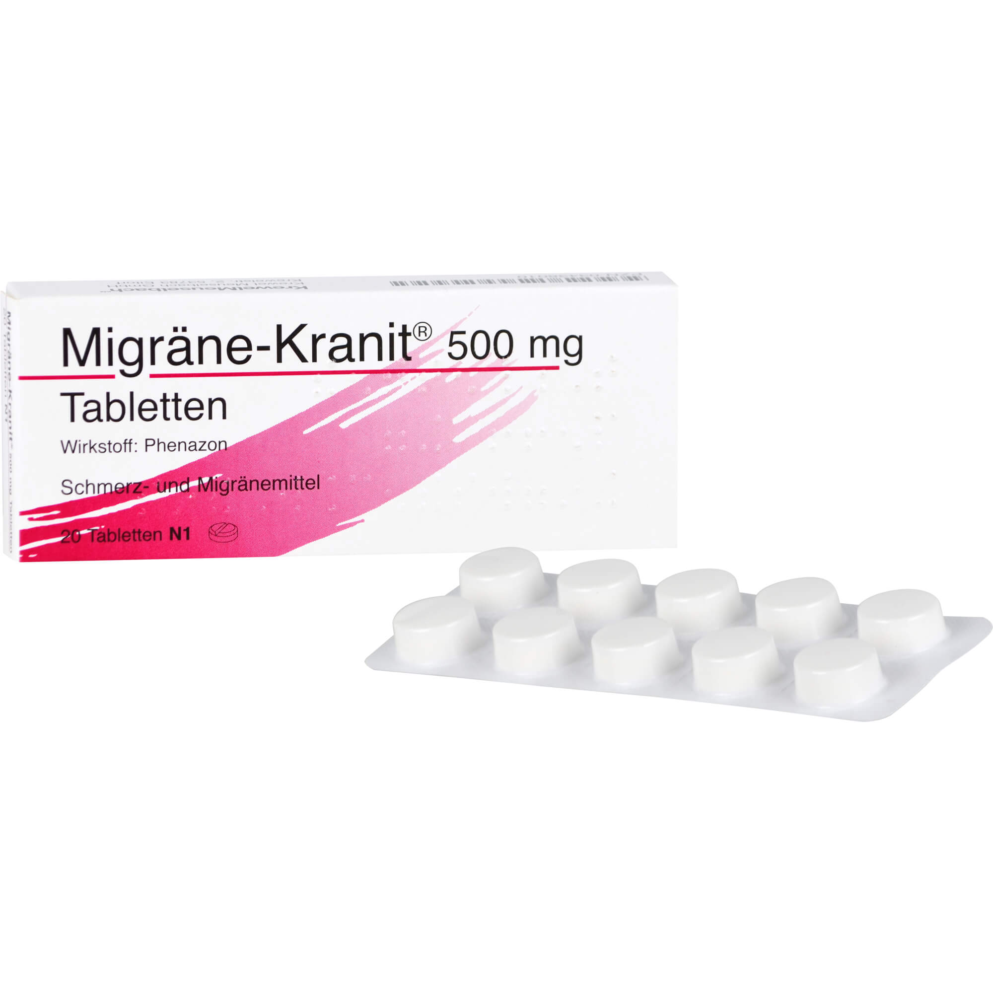 | Name: | Migräne-Kranit 500 mg Tabletten, 20 St. Tabletten |