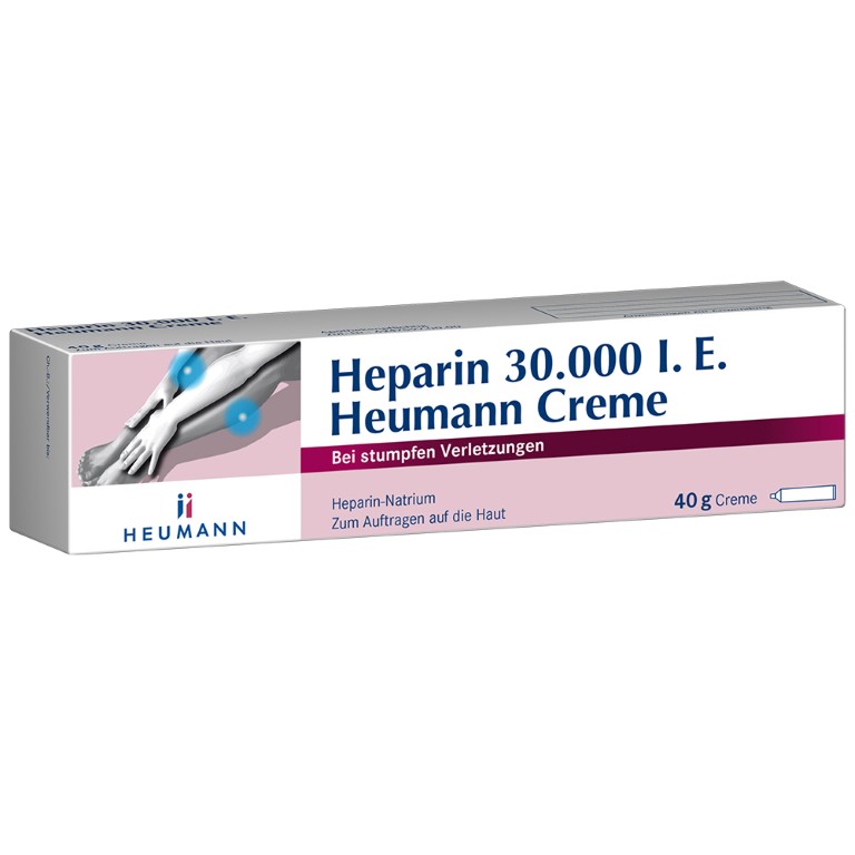 Wirkstoff: Heparin zur Behandlung bei akuten Schwellungszuständen nach stumpfen Verletzungen Creme zum Auftragen auf die Haut apothekenpflichtiges Arzneimittel Hersteller: HEUMANN PHARMA GmbH & Co. Generica KG, Deutschland (Originalprodukt aus Deutschland) PZN: 07466902