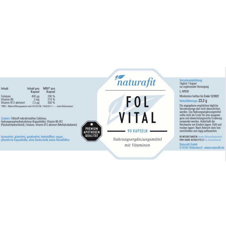 | Name: | naturafit Folvital Kapseln, 90 St. Kapseln |