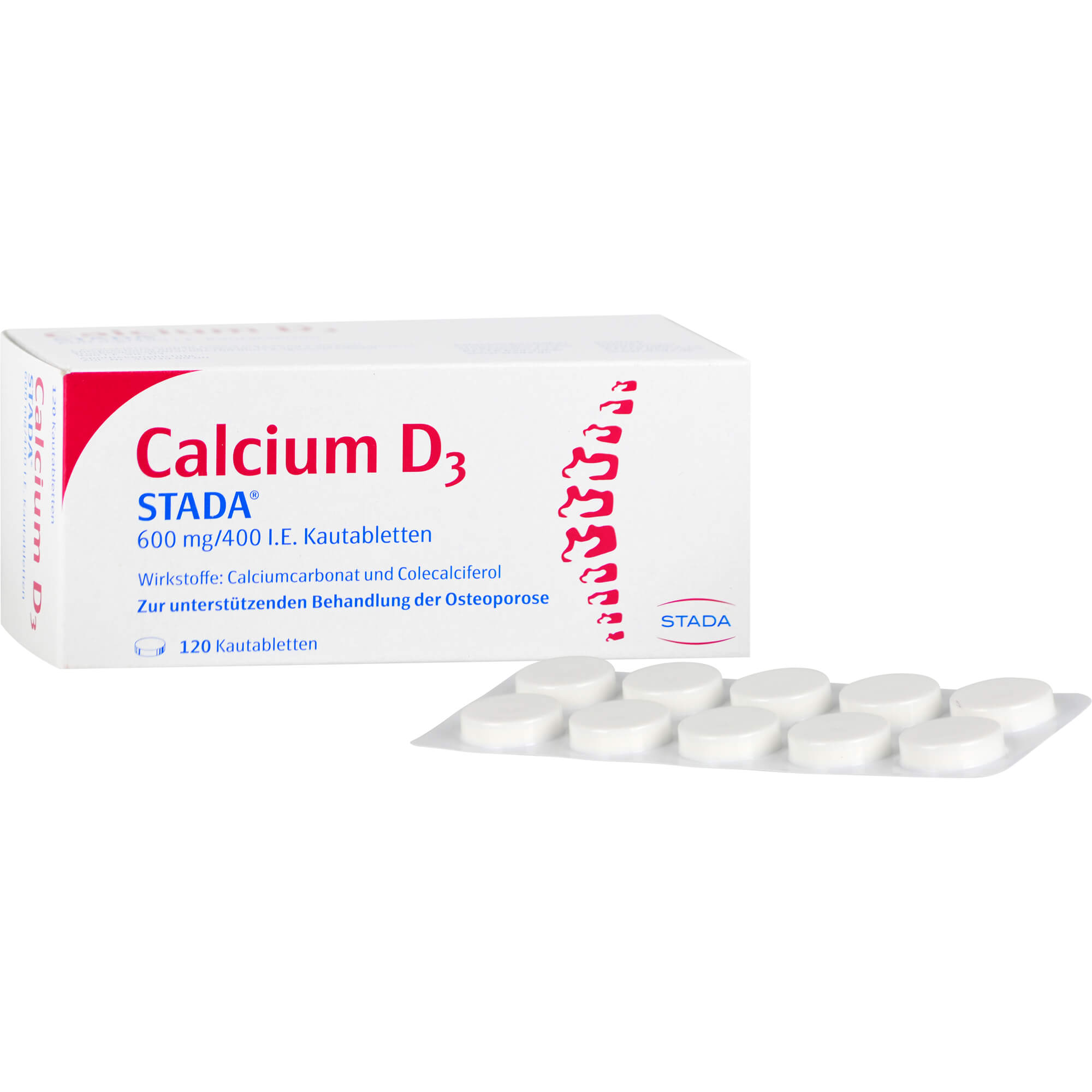 Wirkstoffe: Calcium und Vitamin D3 bei Mangel an Vitamin D und Calcium Tabletten zum Zerkauen apothekenpflichtiges Arzneimittel Hersteller: STADA Consumer Health Deutschland GmbH, Deutschland (Originalprodukt aus Deutschland) PZN: 09234314