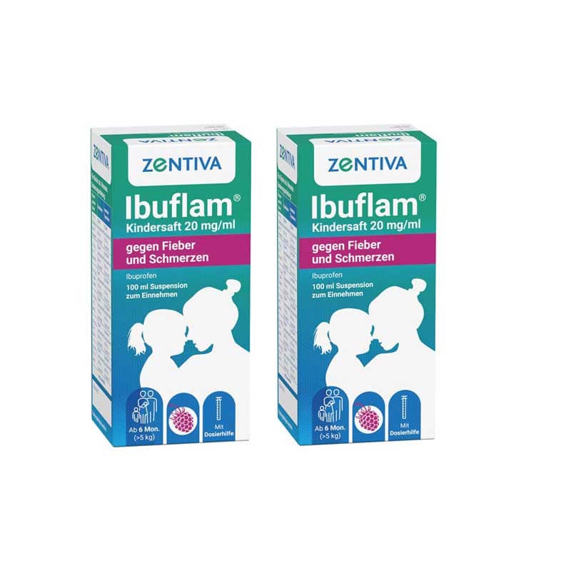 Das Set enthält: 2x PZN 9731722 Ibuflam Kindersaft 20 mg/ml 100 ml SaftWirkstoff: Ibuprofen Anwendungsgebiete: Leichte bis mäßig starke Schmerzen, Fieber. Ohne ärztlichen Rat sollten Kinder und Jgdl. Ibuprofen nicht länger als 3 Tage und Erwachsene nicht über mehr als 4 Tage einnehmen. Hinweis: Enthält Sorbitol und pinkfarbenen Anthocyanextrakt (E 163). Der Beipackzettel der jeweiligen Einzelprodukte befindet sich unter der entsprechenden PZN in unserem Shop.